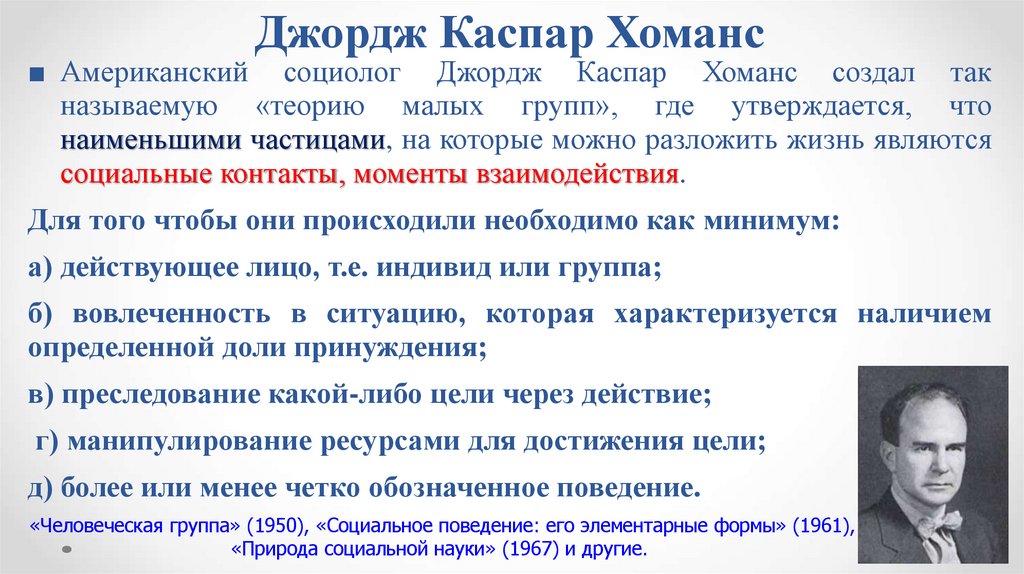 П. А. Сорокин, Т. Парсонс, Дж. Хоманс, Г.