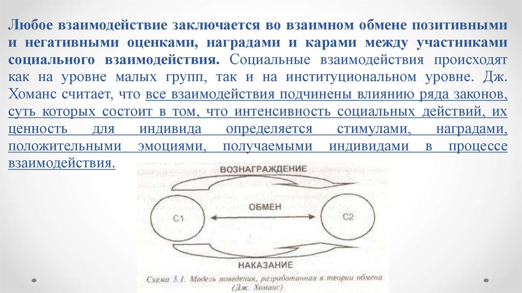 Любое взаимодействие заключается во взаимном обмене позитивнымии негативными оценками, наградами и карами между участниками