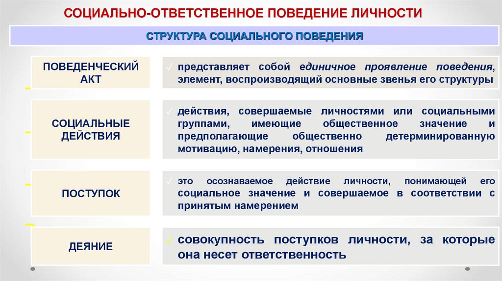 СОЦИАЛЬНО-ОТВЕТСТВЕННОЕ ПОВЕДЕНИЕ ЛИЧНОСТИСТРУКТУРА СОЦИАЛЬНОГО ПОВЕДЕНИЯ