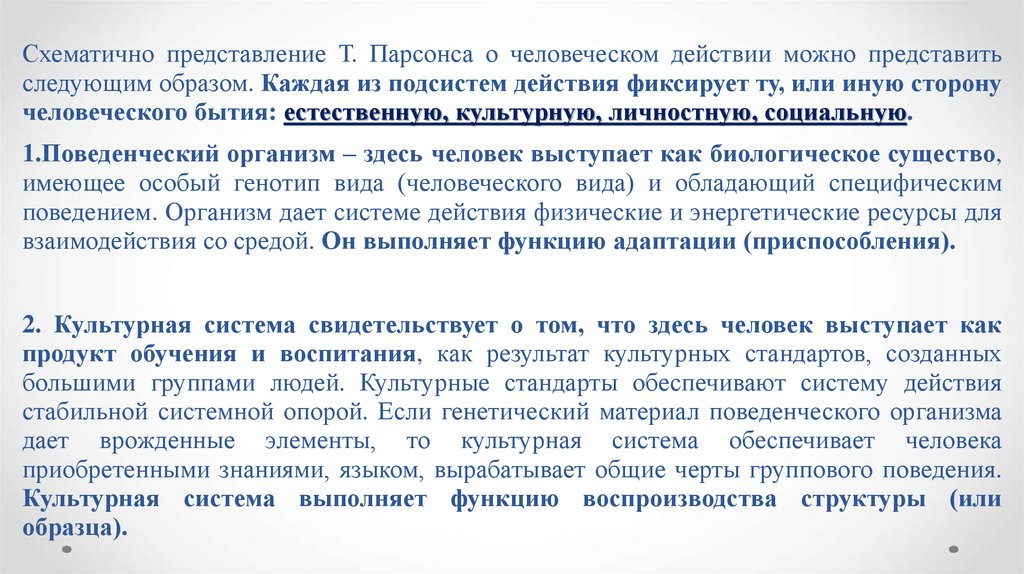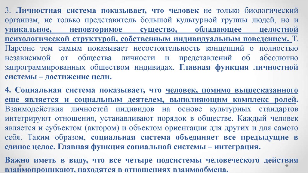 Парсонс тем самым показывает несостоятельность концепций о полностью
