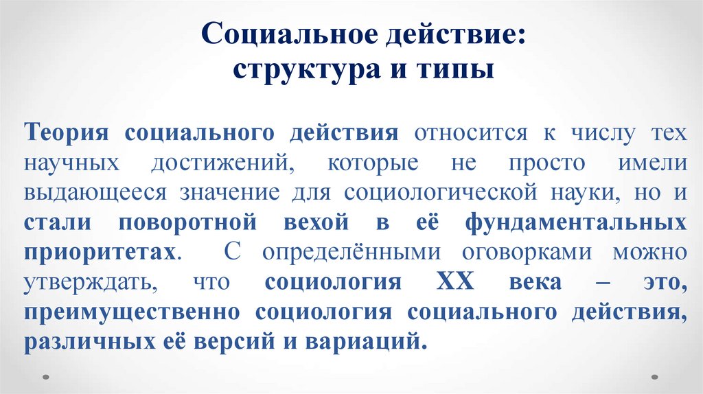 Теория социального действия относится к числу тех