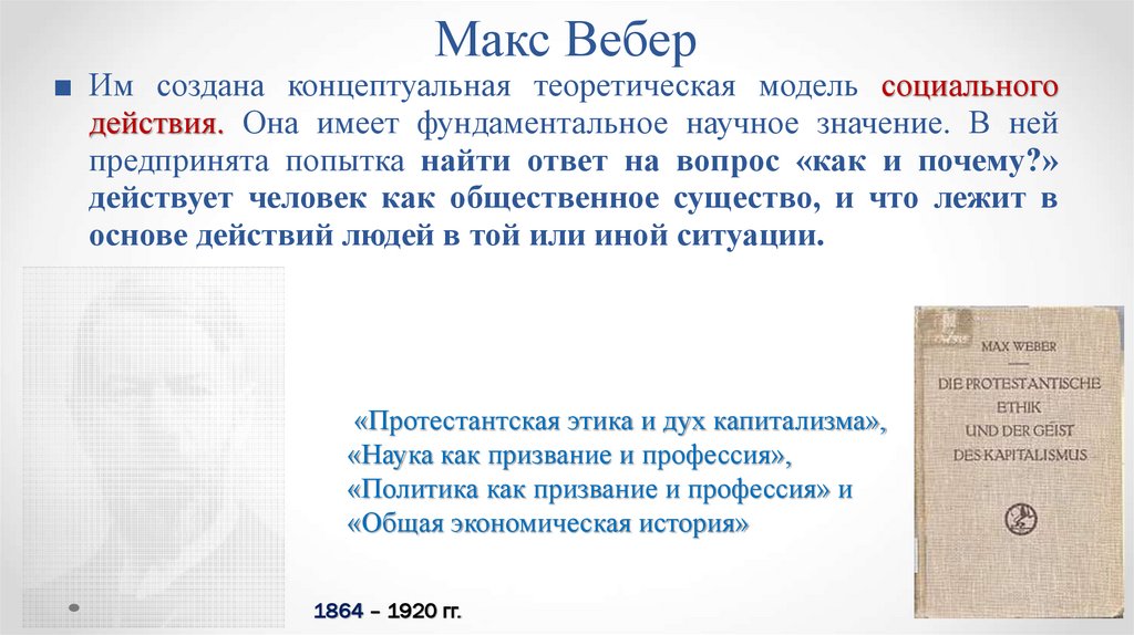 Макс Вебер■ Им создана концептуальная теоретическая модель социального