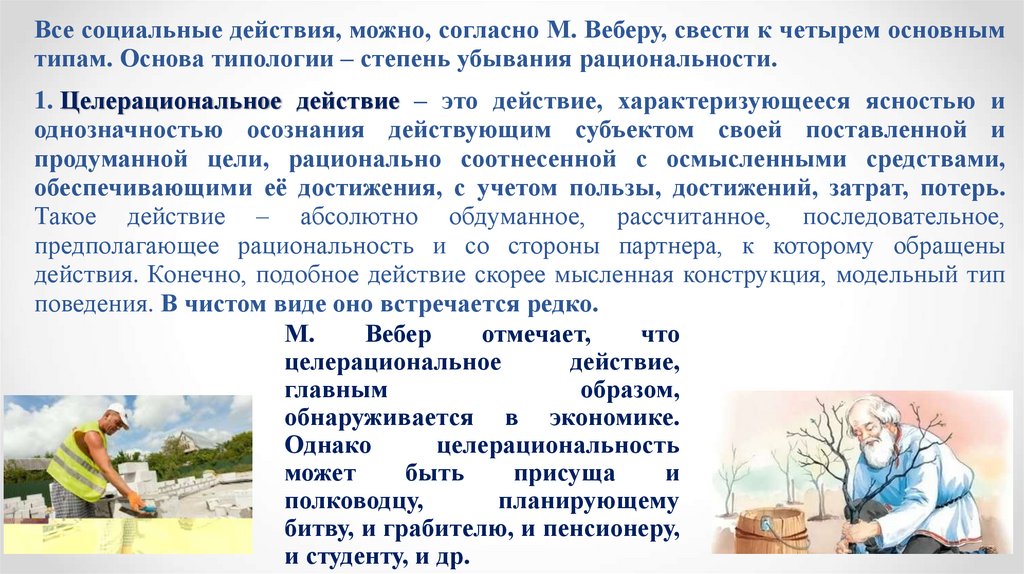если эти действия целерациональны, ценностно-рациональны или, хотя бы,