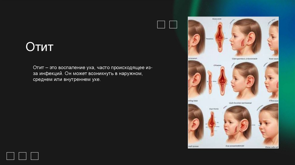 ОтитОтит – это воспаление уха, часто происходящее изза инфекций. Он может возникнуть в наружном,