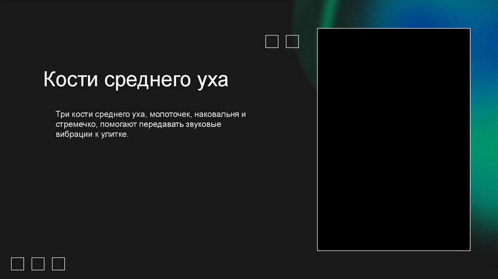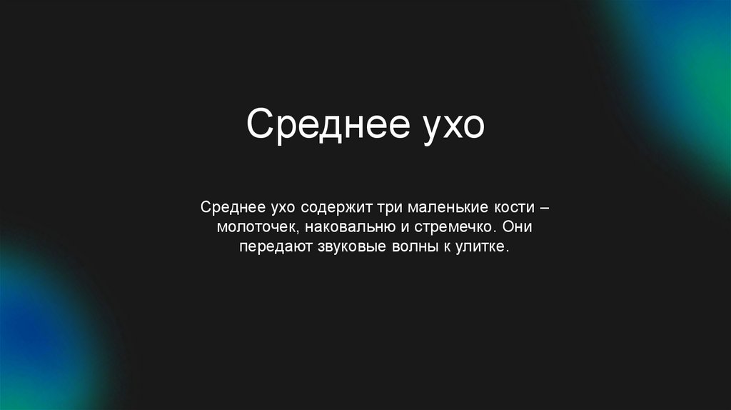 Среднее ухоСреднее ухо содержит три маленькие кости –