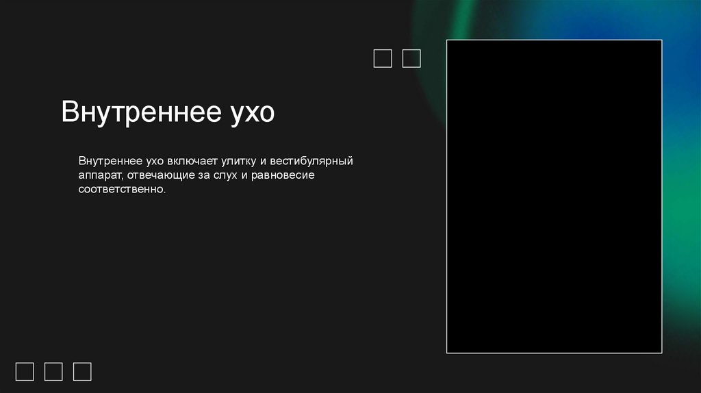 Внутреннее ухоВнутреннее ухо включает улитку и вестибулярный