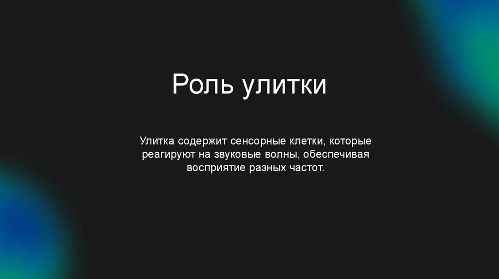 Роль улиткиУлитка содержит сенсорные клетки, которые