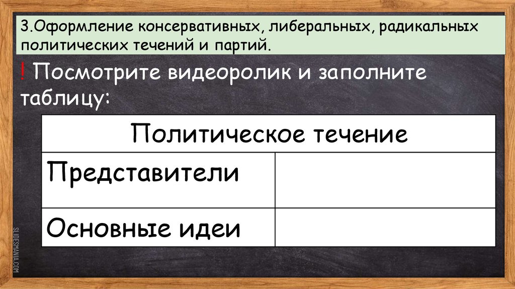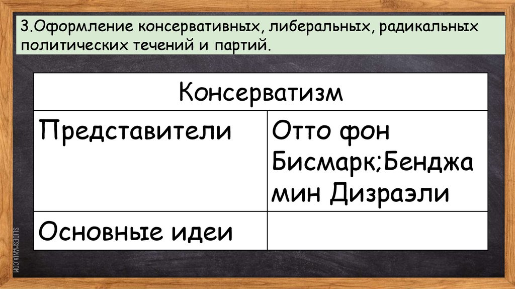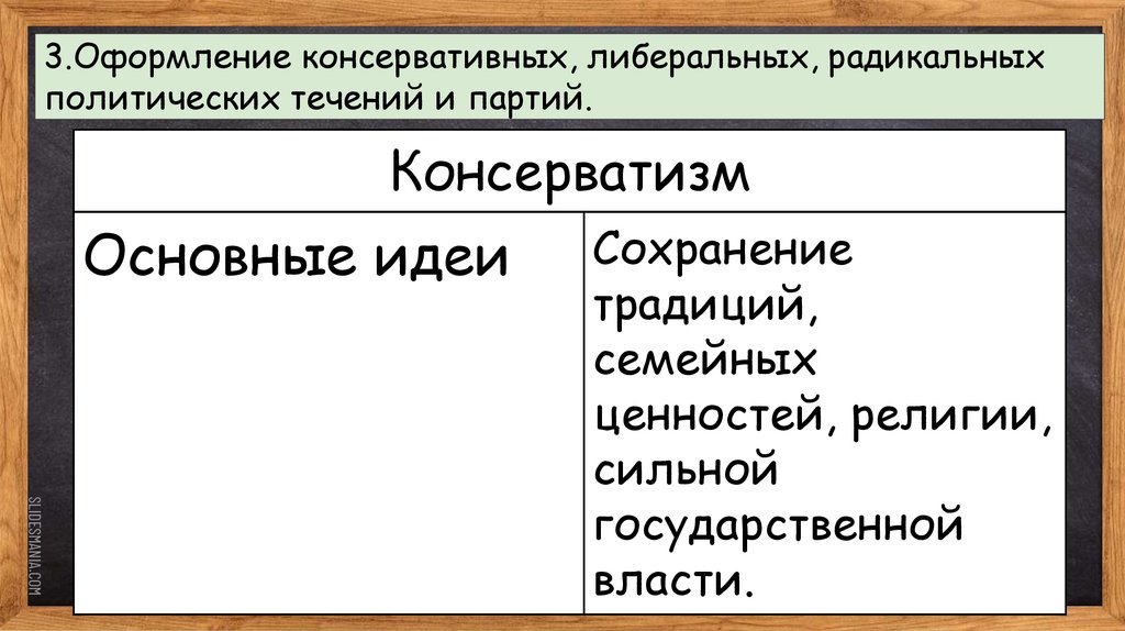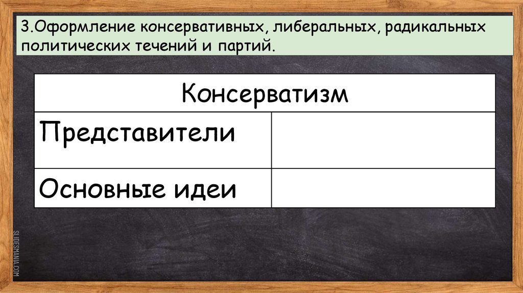 3.Оформление консервативных, либеральных, радикальныхполитических течений и партий.