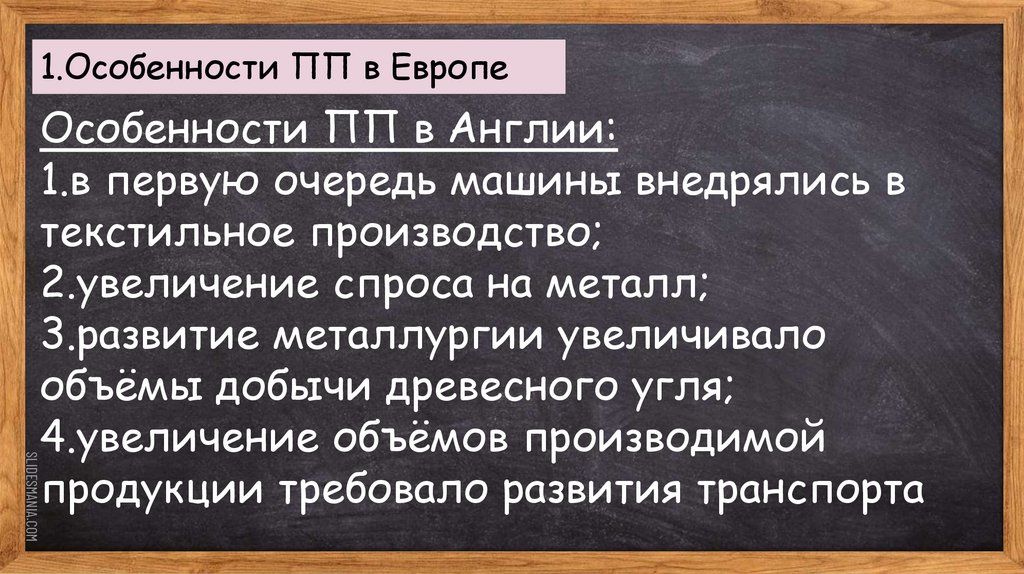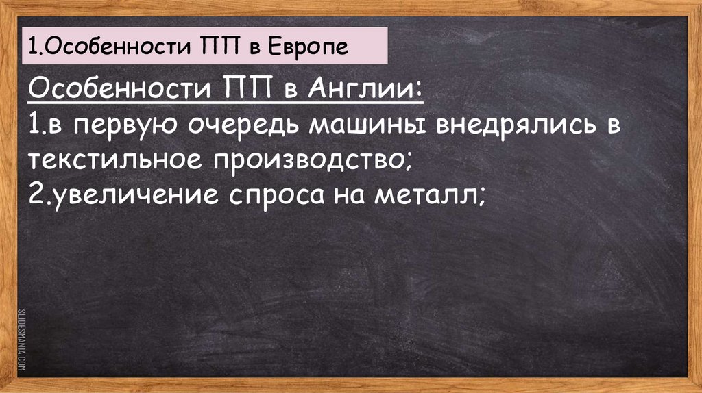 1.Особенности ПП в ЕвропеОсобенности ПП в Англии: