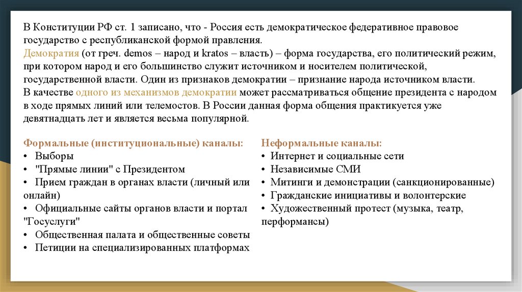 В качестве одного из механизмов демократии может рассматриваться общение президента с народом
