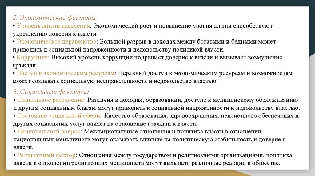 2. Экономические факторы:• Уровень жизни населения: Экономический рост и повышение уровня жизни способствуют