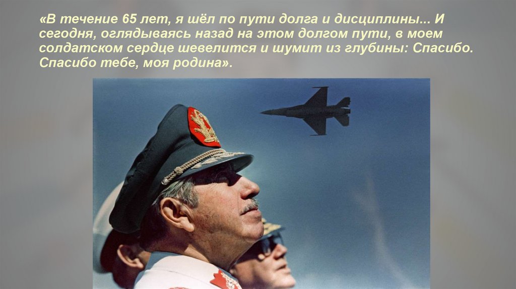 «В течение 65 лет, я шёл по пути долга и дисциплины... Исегодня, оглядываясь назад на этом долгом пути, в моем