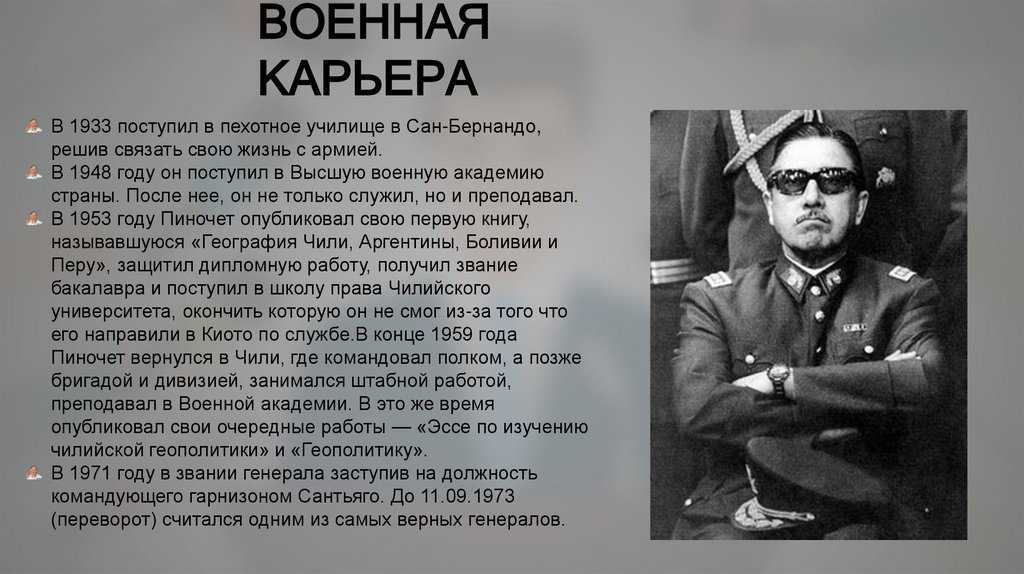 В 1953 году Пиночет опубликовал свою первую книгу,