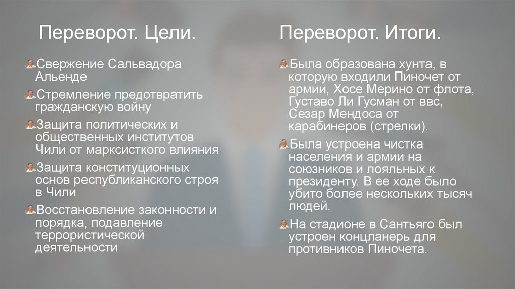 Переворот. Цели.Свержение Сальвадора