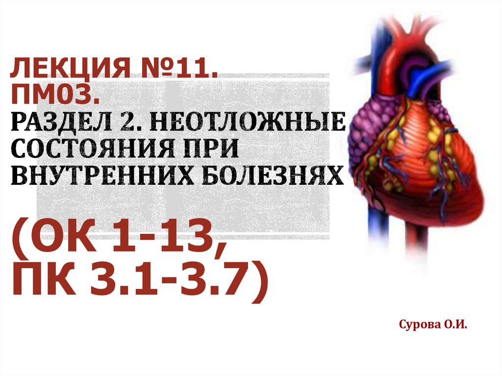 1. Лекция №11. ПМ03. Раздел 2. Неотложные состояния при внутренних болезнях (ОК 1-13, ПК 3.1-3.7)