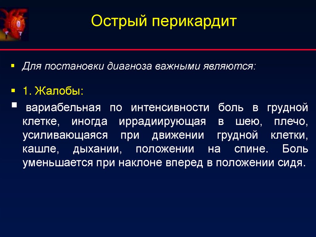 острая боль на вдохе, иногда одышка, кашель (сухой