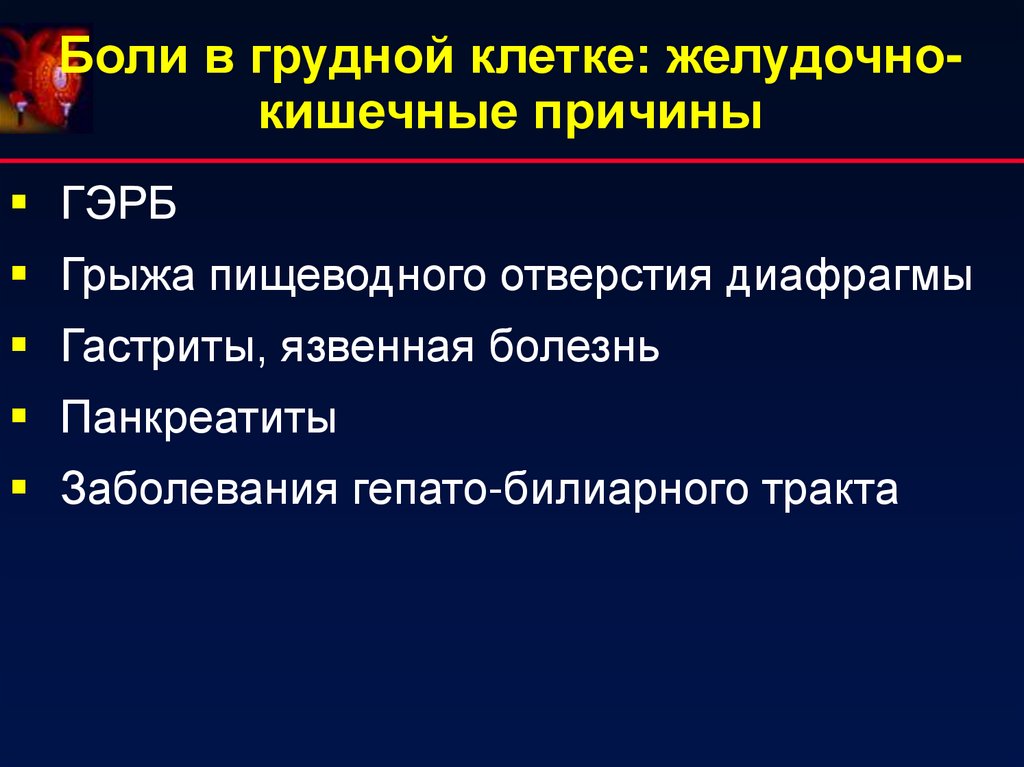 Боли в грудной клетке: желудочнокишечные причиныГЭРБ