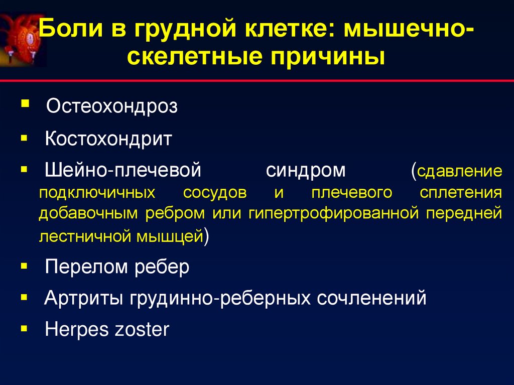 Боли в грудной клетке: мышечноскелетные причиныОстеохондроз