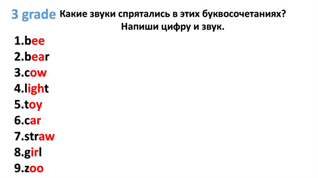 3 grade Какие звуки спрятались в этих буквосочетаниях?Напиши цифру и звук.
