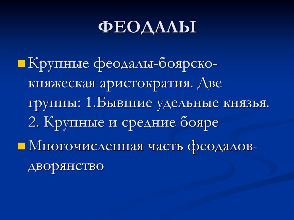 ФЕОДАЛЫКрупные феодалы-боярско-