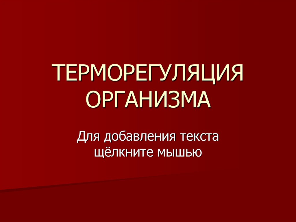 ТЕРМОРЕГУЛЯЦИЯОРГАНИЗМА