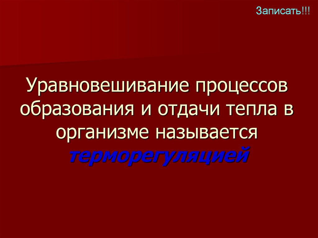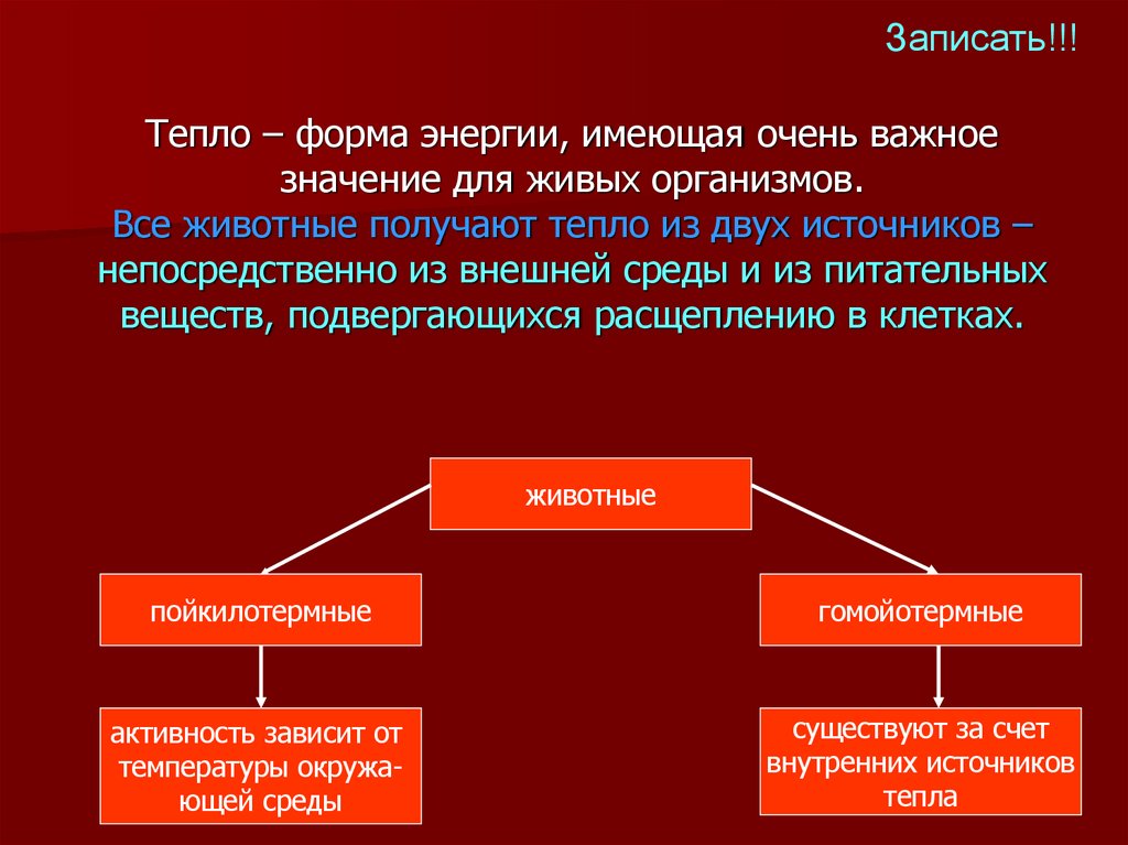 Записать!!!Тепло – форма энергии, имеющая очень важное