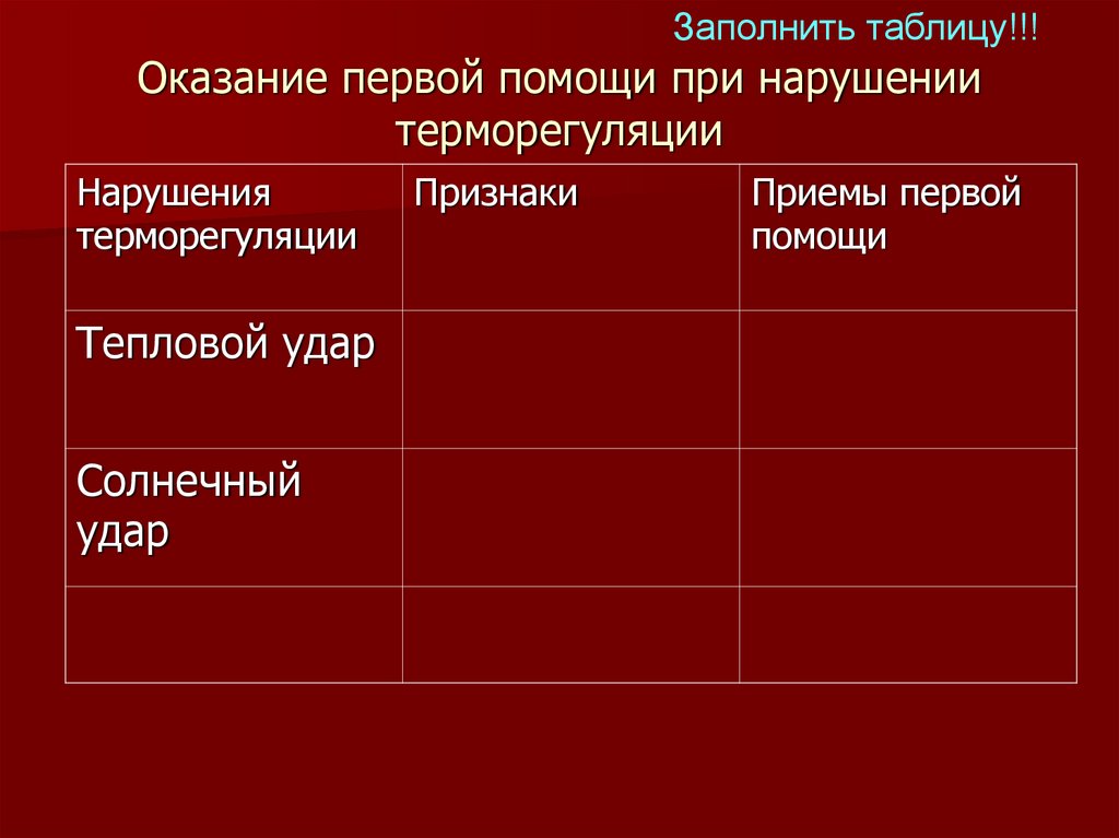 Заполнить таблицу!!!Оказание первой помощи при нарушении
