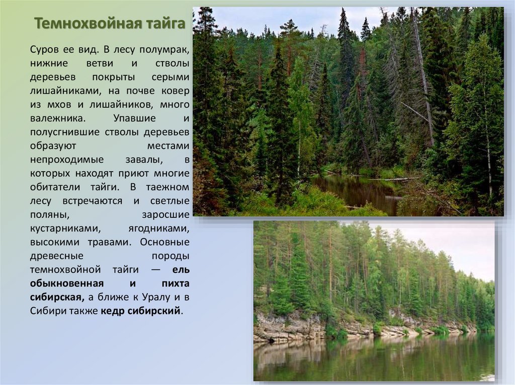 Темнохвойная тайгаСуров ее вид. В лесу полумрак,