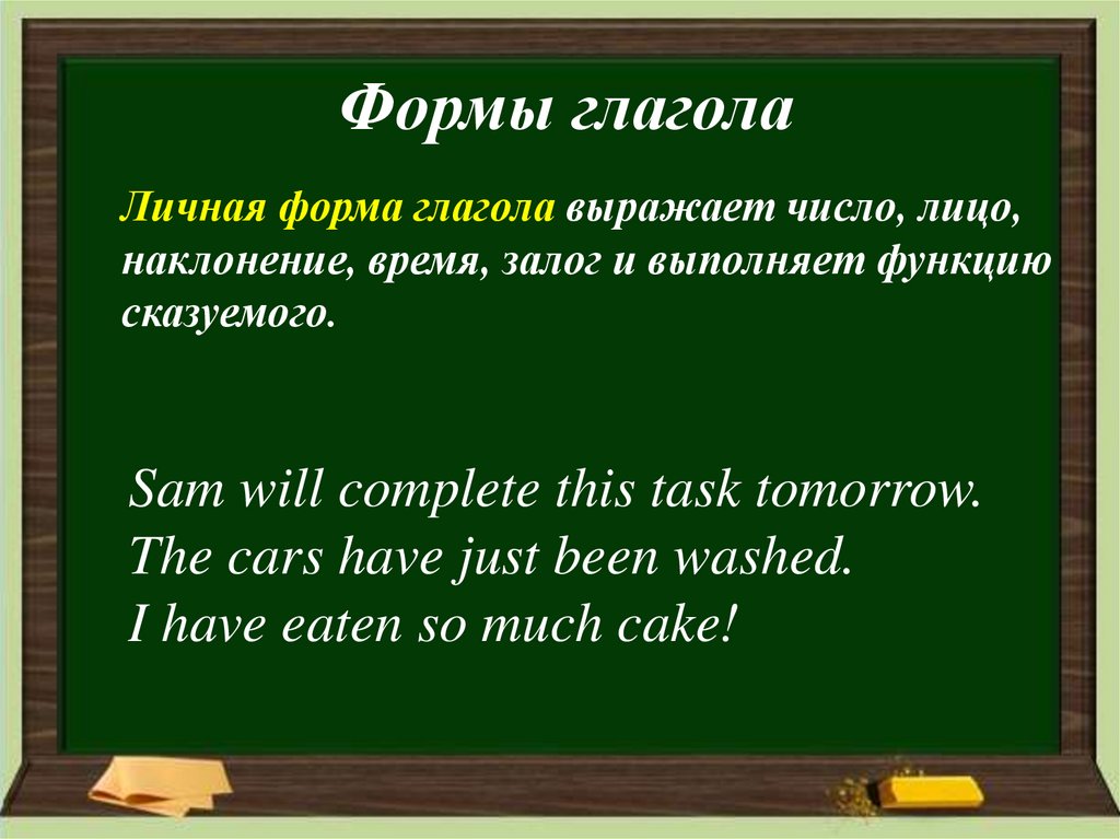 Формы глаголаЛичная форма глагола выражает число, лицо,