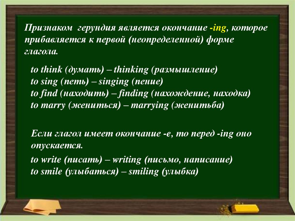 Признаком герундия является окончание -ing, котороеприбавляется к первой (неопределенной) форме