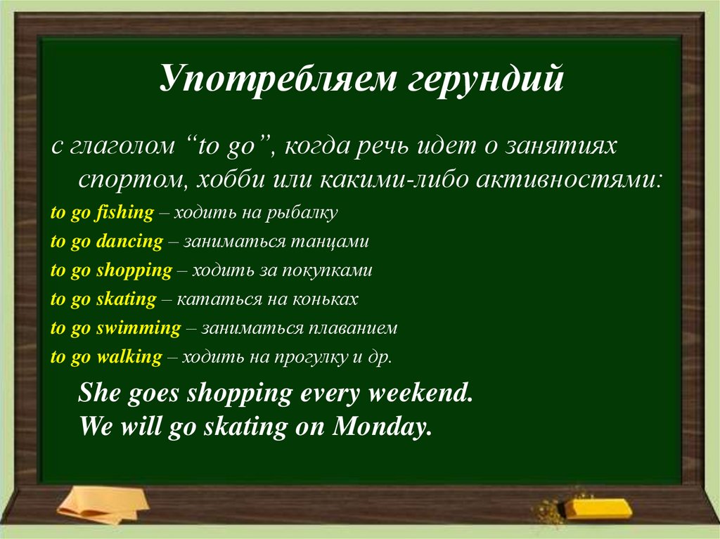 Употребляем герундийс глаголом “to go”, когда речь идет о занятиях