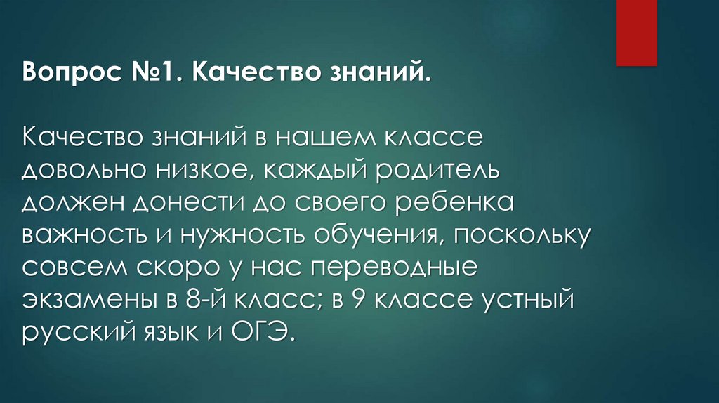 Вопрос №1. Качество знаний.Качество знаний в нашем классе