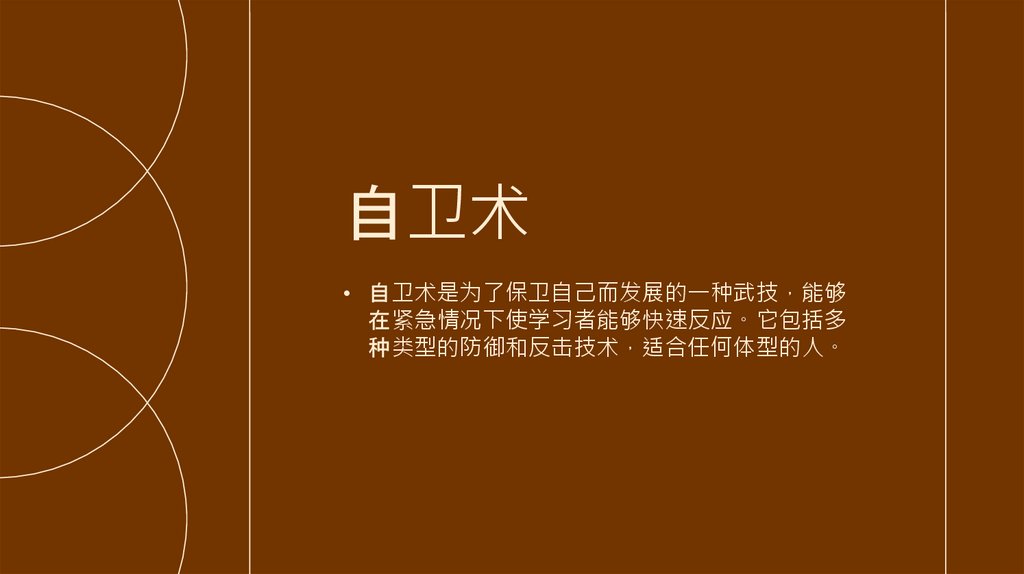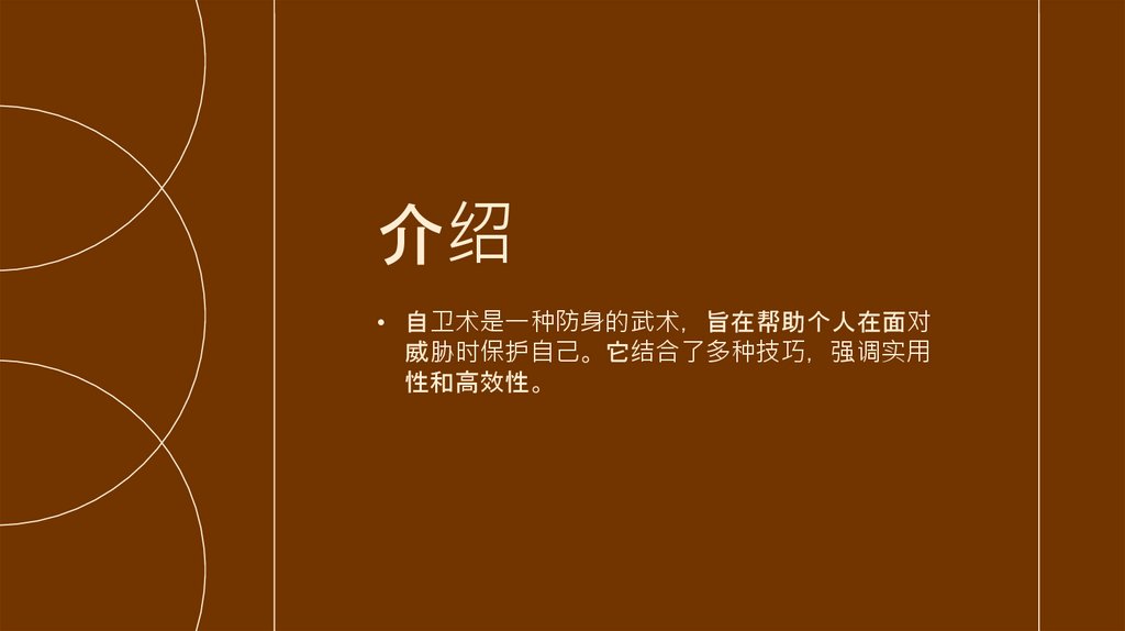 介绍• 自卫术是一种防身的武术 旨在帮助个人在面对