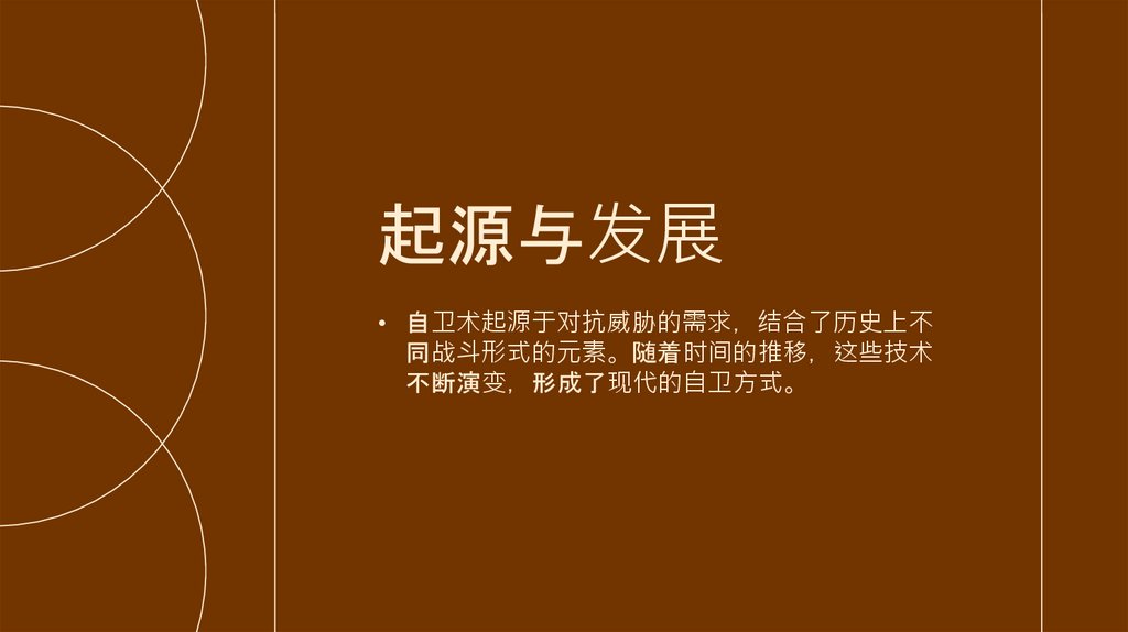 起源与发展• 自卫术起源于对抗威胁的需求 结合了历史上不