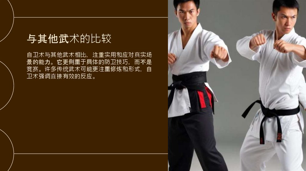 与其他武术的比较自卫术与其他武术相比 注重实用和应对真实场