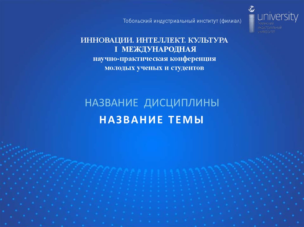 Тобольский индустриальный институт (филиал)ИННОВАЦИИ. ИНТЕЛЛЕКТ. КУЛЬТУРА