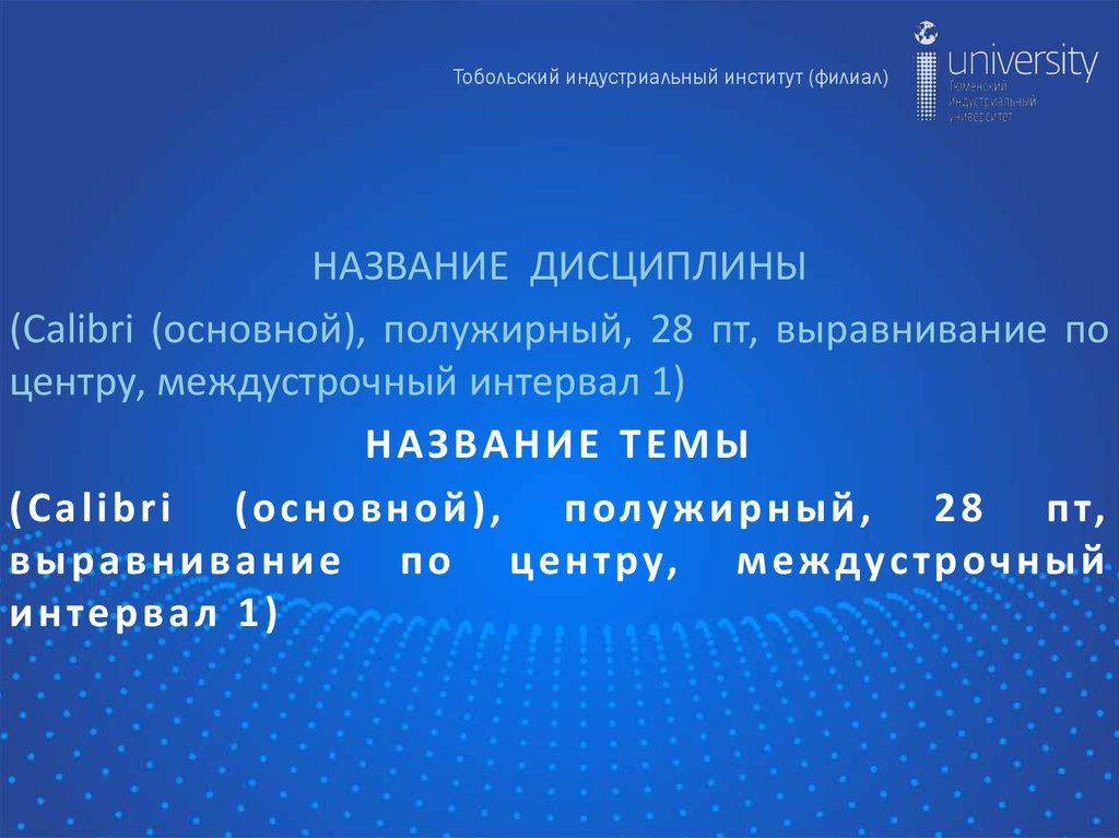 Тобольский индустриальный институт (филиал)НАЗВАНИЕ ДИСЦИПЛИНЫ