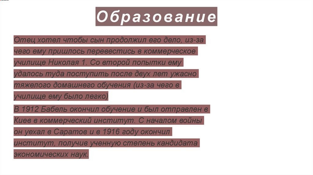 Об р а з о в а н и еОтец хотел чтобы сын продолжил его дело, из-за