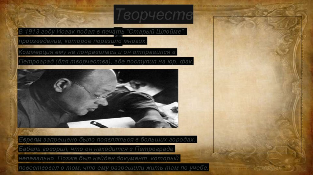ТворчествВ 1913 году Исаак подал в печать “Старый Шлойме”,