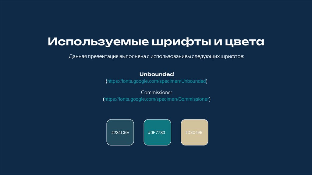 Используемые шрифты и цветаДанная презентация выполнена с использованием следующих шрифтов: