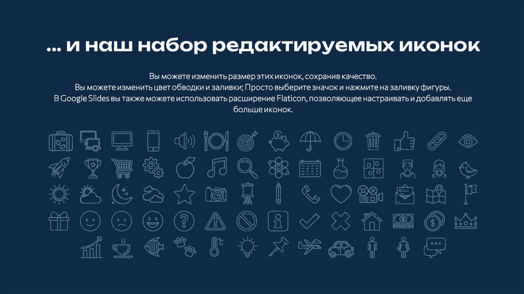 ... и наш набор редактируемых иконокВы можете изменить размер этих иконок, сохранив качество.
