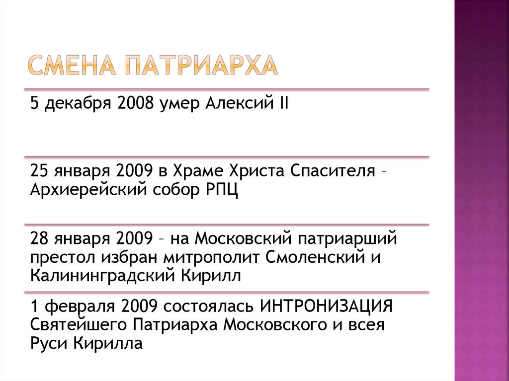 5 декабря 2008 умер Алексий II25 января 2009 в Храме Христа Спасителя –