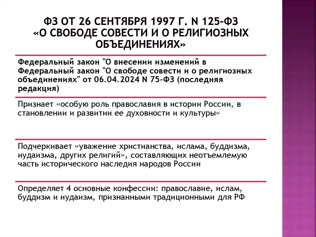 Федеральный закон "О внесении изменений вФедеральный закон "О свободе совести и о религиозных