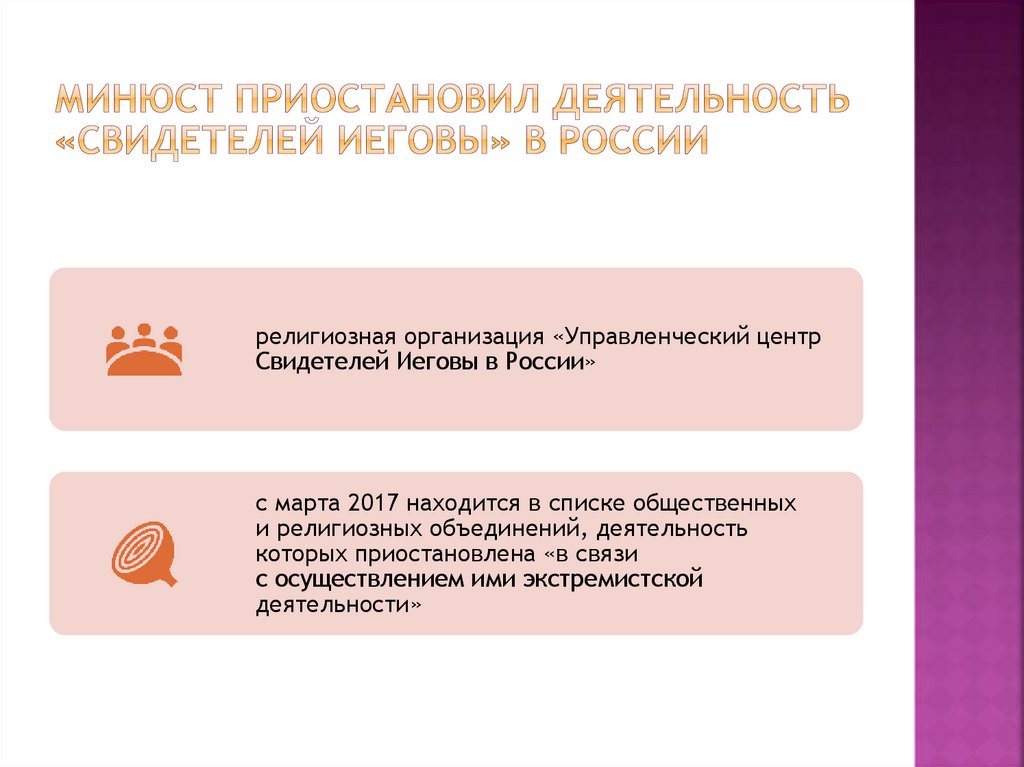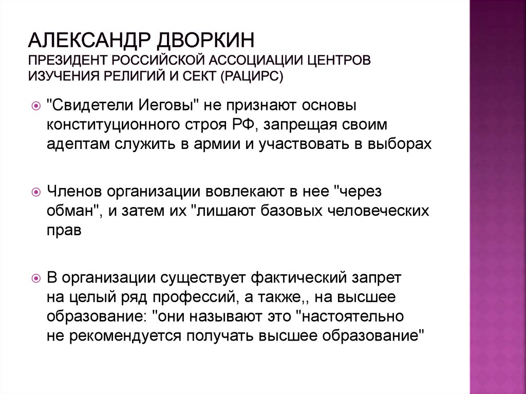 "Свидетели Иеговы" не признают основыконституционного строя РФ, запрещая своим