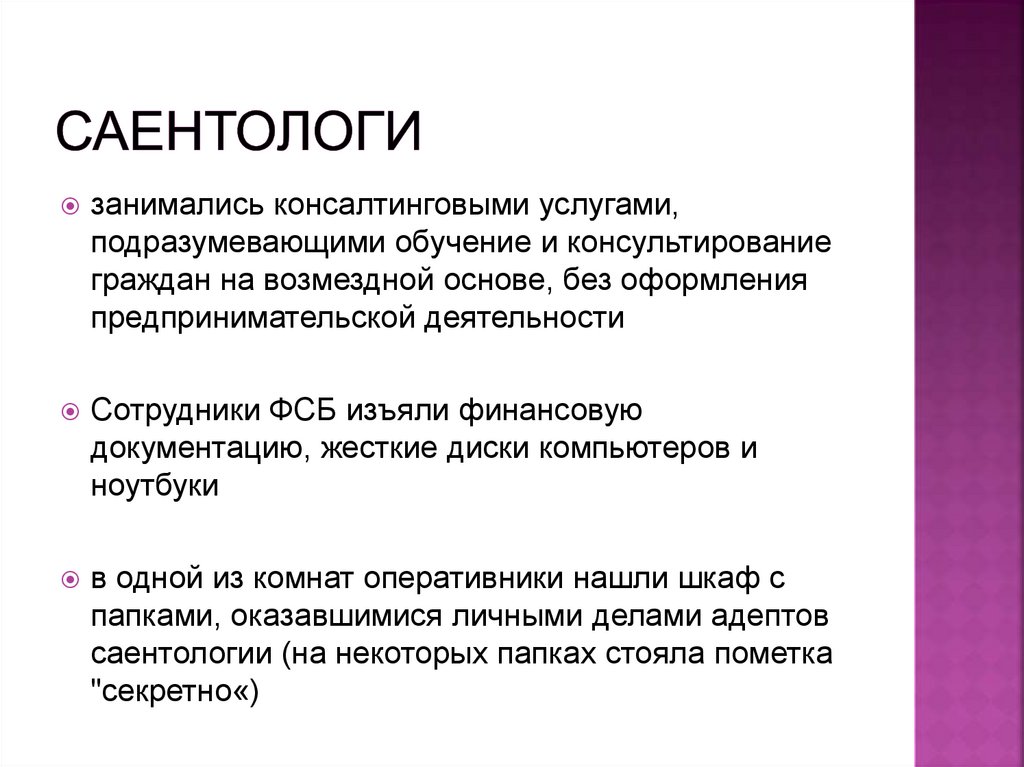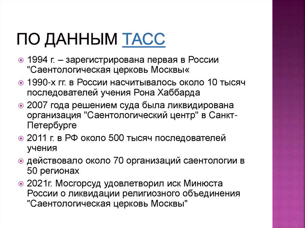 1994 г. – зарегистрирована первая в России"Саентологическая церковь Москвы«