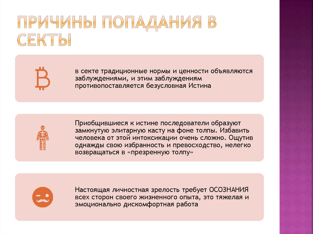 в секте традиционные нормы и ценности объявляютсязаблуждениями, и этим заблуждениям