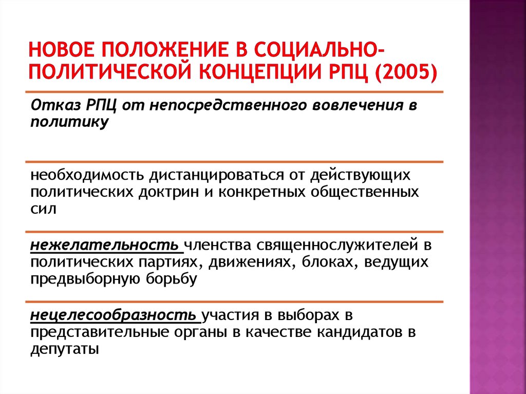Отказ РПЦ от непосредственного вовлечения вполитику