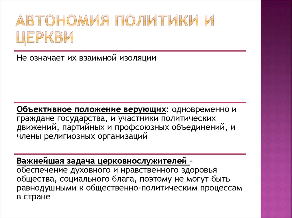 Не означает их взаимной изоляцииОбъективное положение верующих: одновременно и