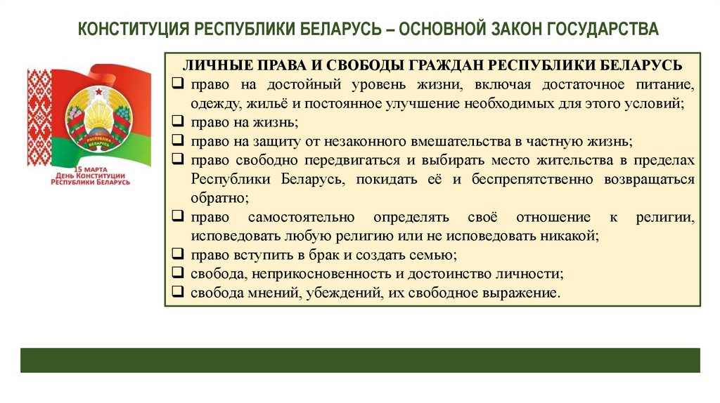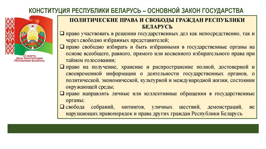 КОНСТИТУЦИЯ РЕСПУБЛИКИ БЕЛАРУСЬ – ОСНОВНОЙ ЗАКОН ГОСУДАРСТВАПОЛИТИЧЕСКИЕ ПРАВА И СВОБОДЫ ГРАЖДАН РЕСПУБЛИКИ