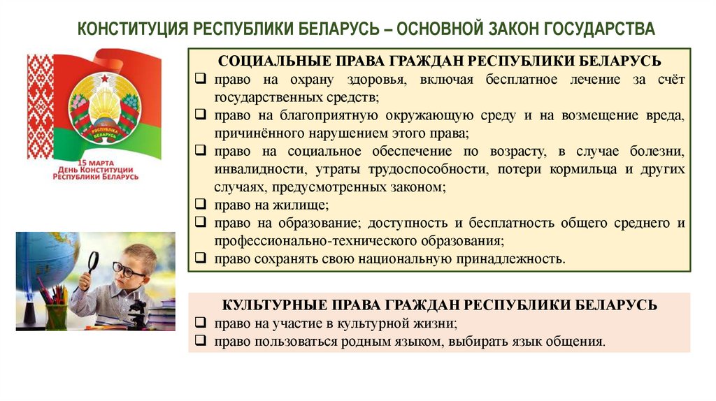 КОНСТИТУЦИЯ РЕСПУБЛИКИ БЕЛАРУСЬ – ОСНОВНОЙ ЗАКОН ГОСУДАРСТВАСОЦИАЛЬНЫЕ ПРАВА ГРАЖДАН РЕСПУБЛИКИ БЕЛАРУСЬ